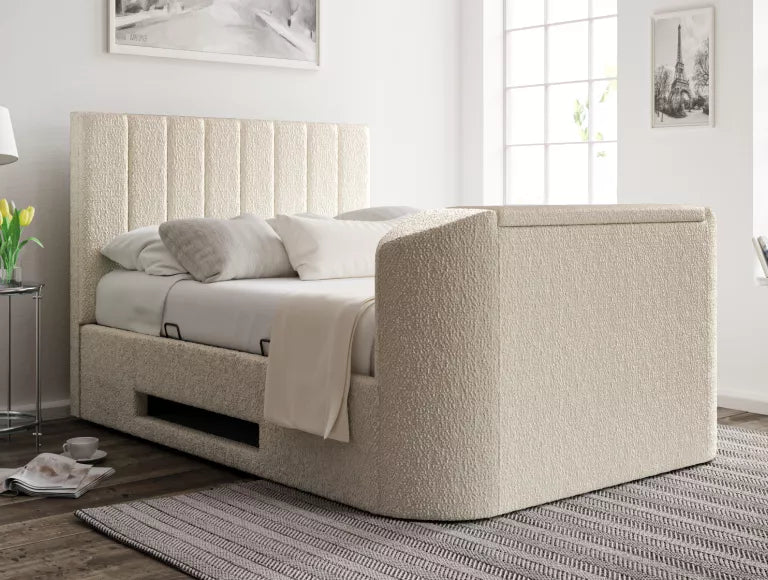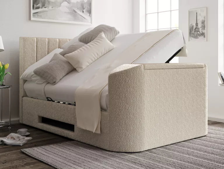Berkley Upholstered Boucle Ivory Ottoman TV Bed - Bed Frame Only
