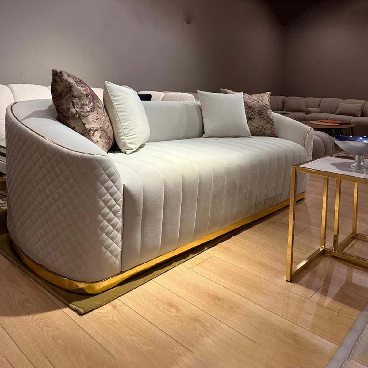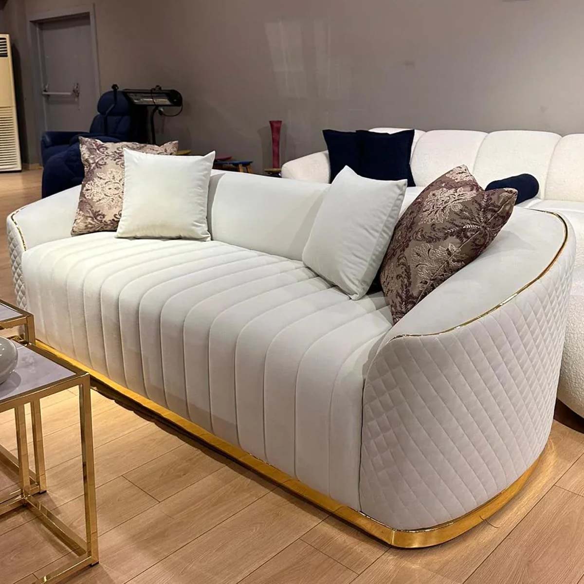 Introducing the Dubai Cream Gold Premium Velvet Sofa, where luxury meets modern elegance. Upholstered in plush velvet fabric, this exquisite piece offers an invitingly soft texture that complements its sophisticated appearance. The sleek gold trim base enhances the sofa’s contemporary aesthetic, adding a refined touch of opulence that will transform any room.