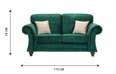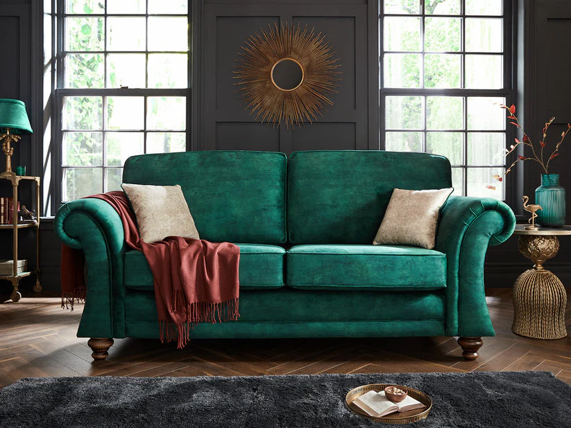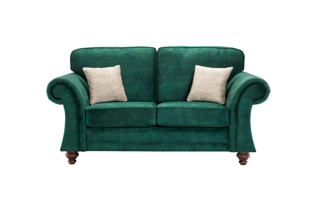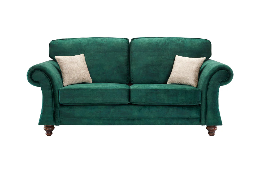 Genoa Handmade Sofas In Milano Emerald Green Fabric With Turned Wooden Legs