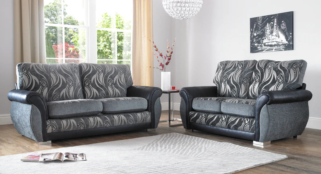 Mandy Handmade Quality Motif Fabric And Black Leather Sofas