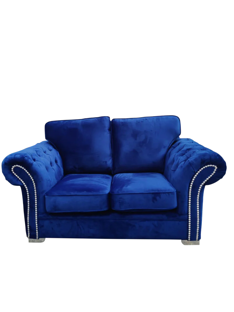 Manhattan Blue Fabric Sofas Chesterfield Style Arms With Chrome Feet