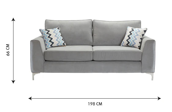 Parma Handmade Plush Monaco Grey Real Fabric Sofa With Steel Legs