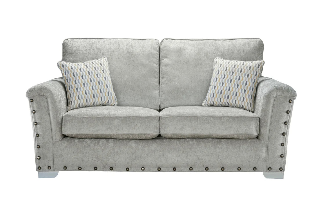 Nebraska Bespoke Grey Fabric Studded With Chrome Feet Sofa For Elderly
